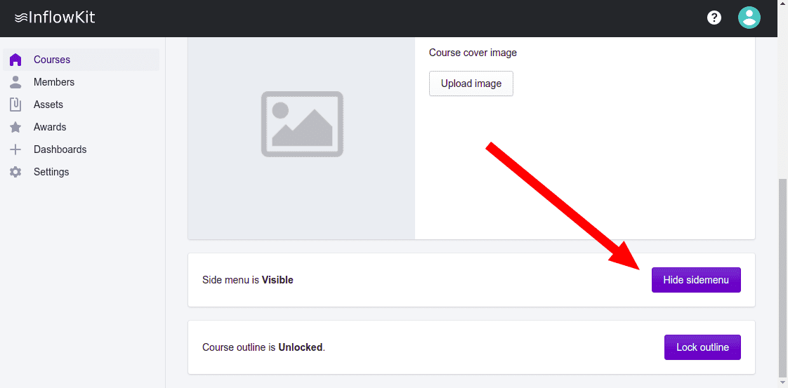 You can hide/show course menu by clicking Hide sidemenu button as shown below