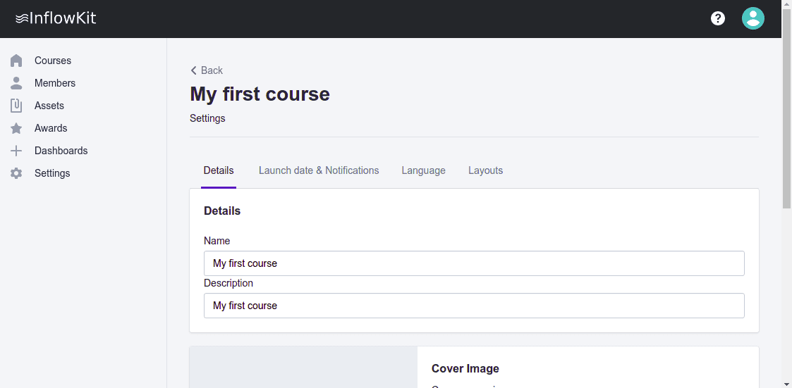 You can now change the Name and description of the chapter. You can also update or add a cover image by clicking Upload image on the cover image section, as shown above.