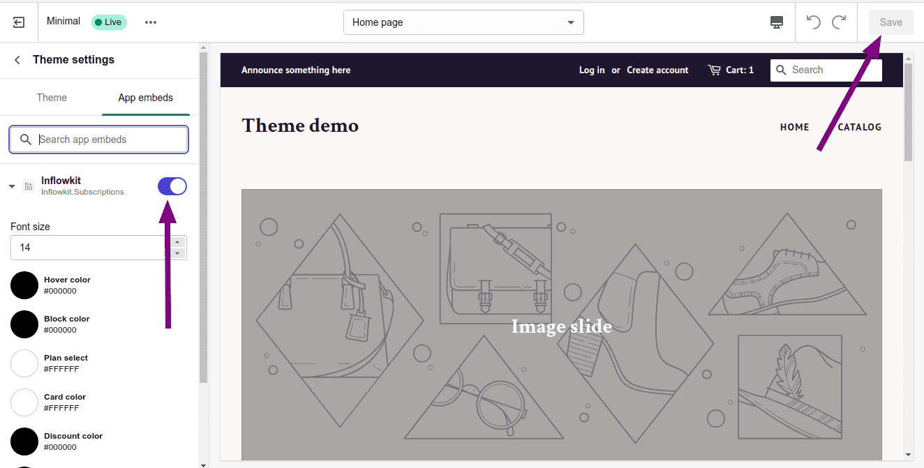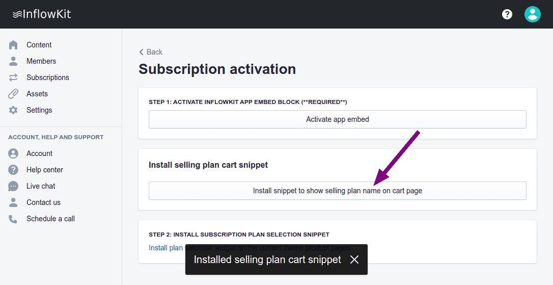 - On the page that opens ensure that Inflowkit subscriptions is activated if not, activated it by clicking