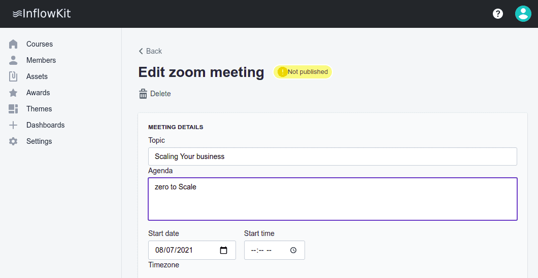 - Add your Zoom Meeting details and it’ll automatically be updated.
